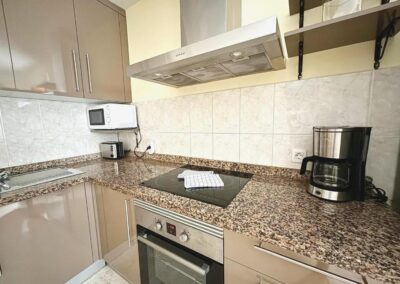 La cocina está totalmente equipada con lavavajillas, horno, microondas, cerámica de vidrio, tostadora, hervidor de agua, cafetera automática, lavadora, plancha de ropa.