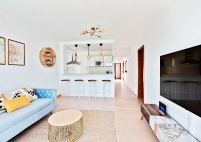 El check-in es automático con total tranquilidad. Hay 2 entradas, la primera con cancela automática dentro del residencial y una segunda que da directamente a la calle principal, Avenida Faro Pechiguera, a pocos metros hay paradas de autobús y taxi. Sin embargo, para los amantes de las caminatas, hay 15 minutos a pie para llegar al centro y 10 para llegar a Playa Flamingo.