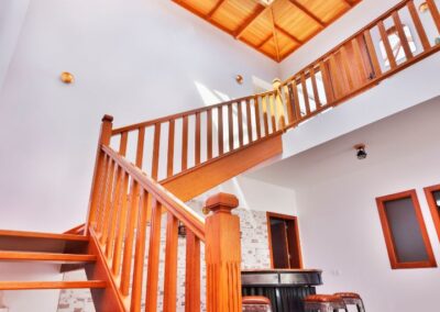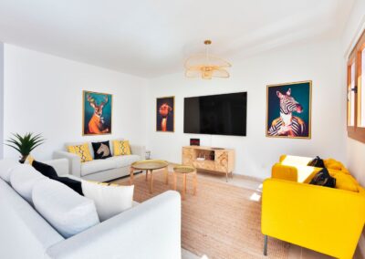 La villa esta distribuida en 2 plantas, con un total de 200 metros cuadrados. Su distribución es amplia, cómoda y está amueblada con un estilo chic elegante.