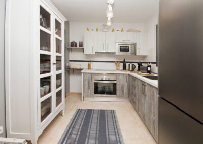 La cocina está totalmente equipada con lavavajillas, horno, microondas, cerámica de vidrio, tostadora, hervidor de agua, cafetera automática, lavadora, plancha de ropa y licuadora.
